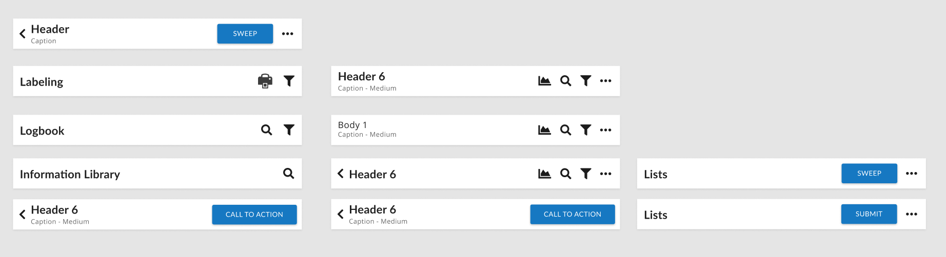 With product requirements in mind and a clearer view of the challenges, I then brainstormed multiple variations on a single app bar to rule over the common patterns.